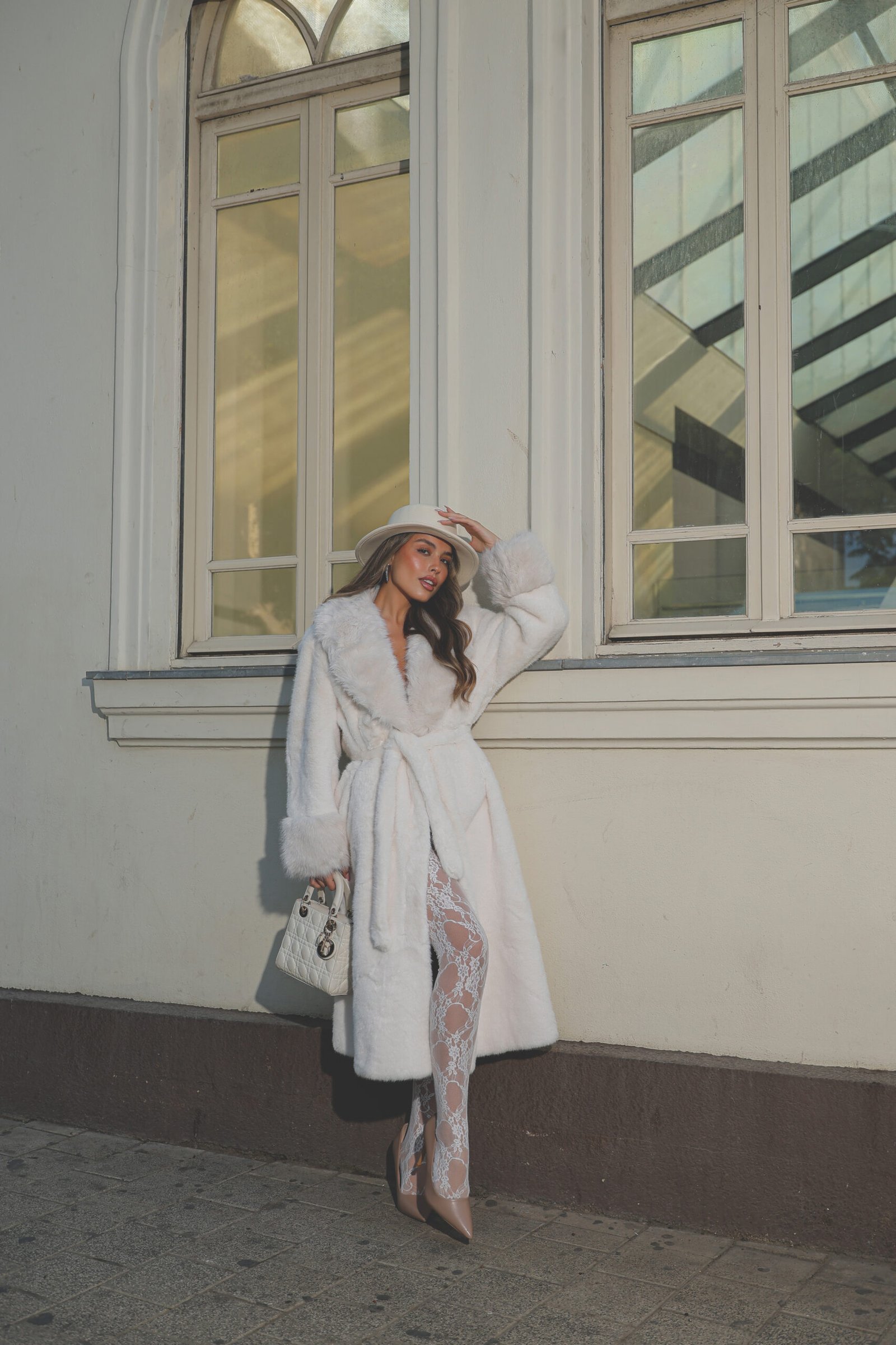 מעיל לונדון פרווה צבע לבן