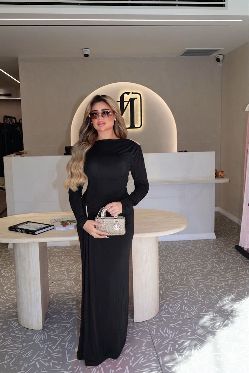 שמלת ליאל בד מחטב צבע שחור